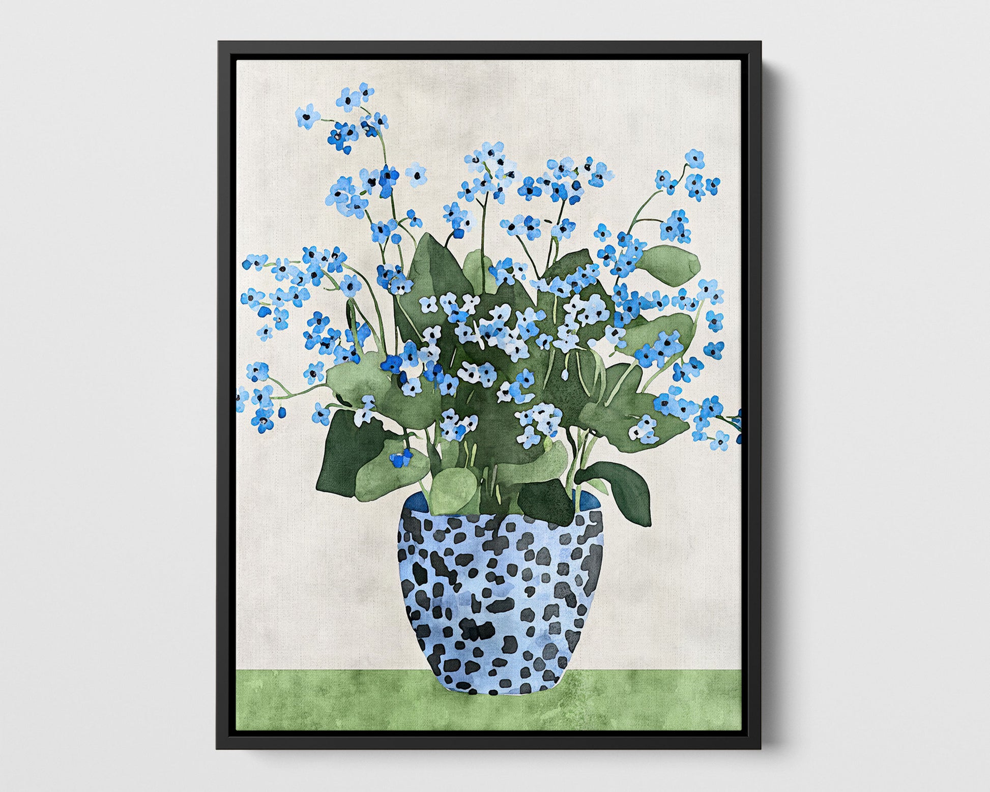 Add some class and whimsy to your space with this Forget-Me-Not Floral Art Print. Featuring dainty blue flowers in a dotted vase, this print brings a peaceful, natural feel to any space. Whether in your bedroom, kitchen, or living room, the soft watercolor style and intricate botanical elements make it a perfect match for modern farmhouse or bohemian vibes.